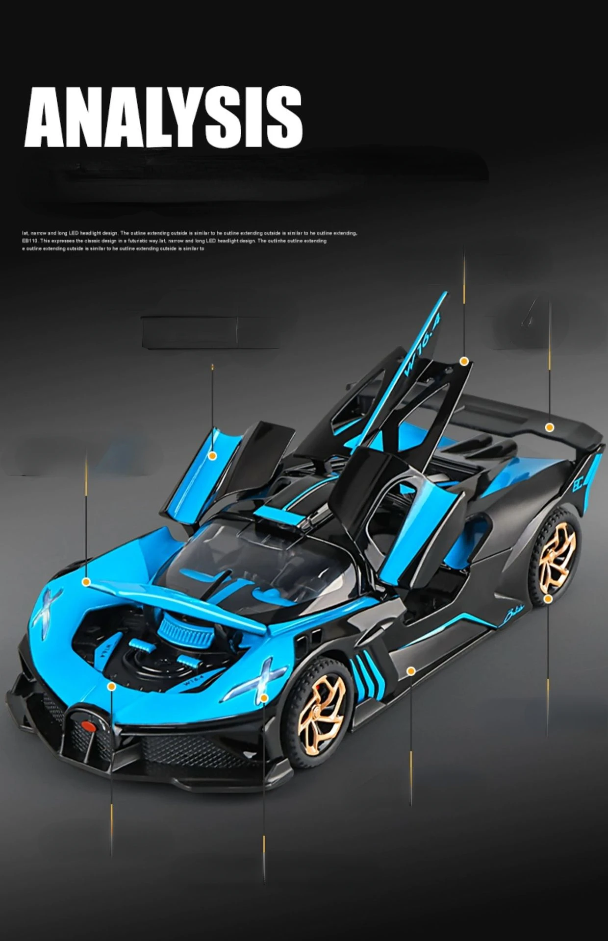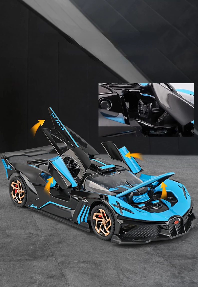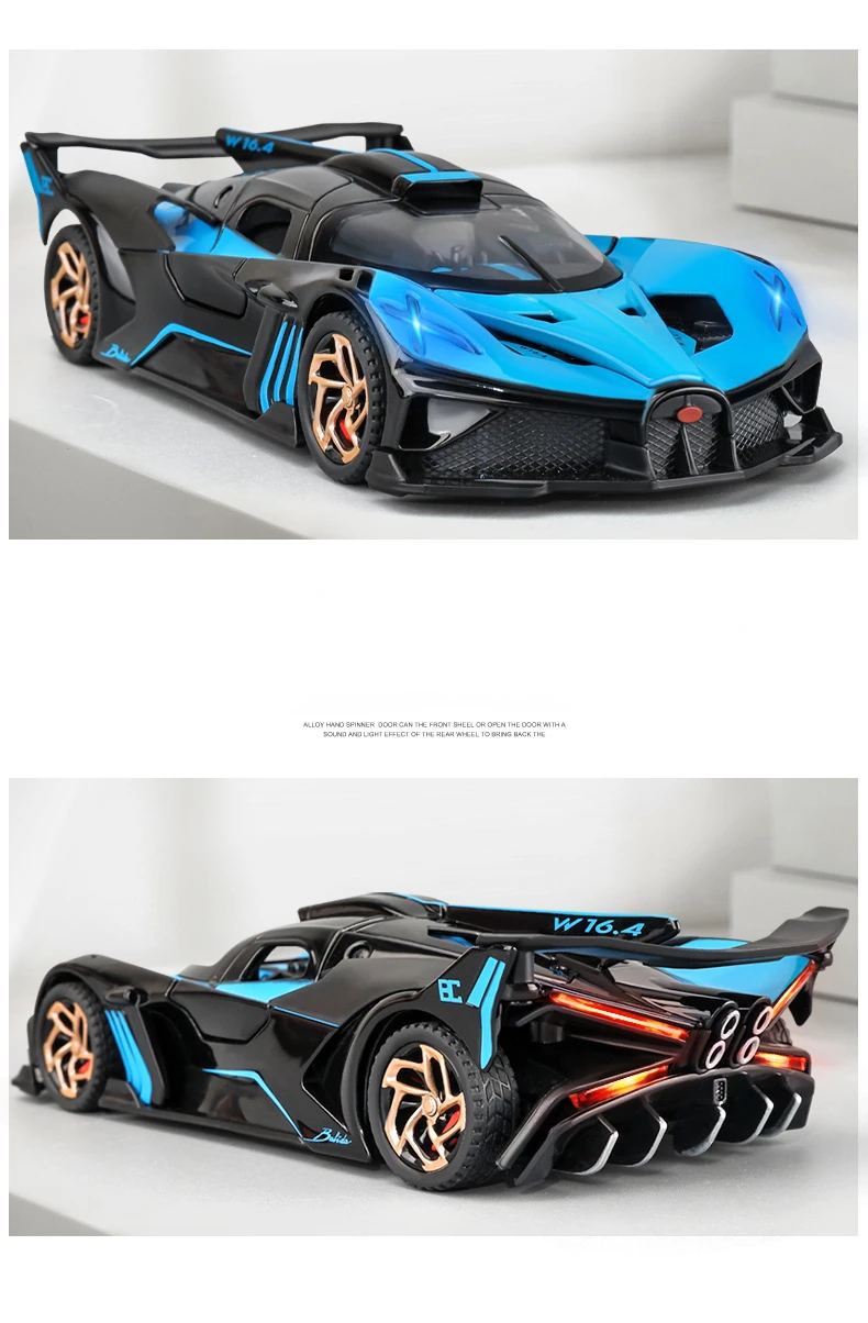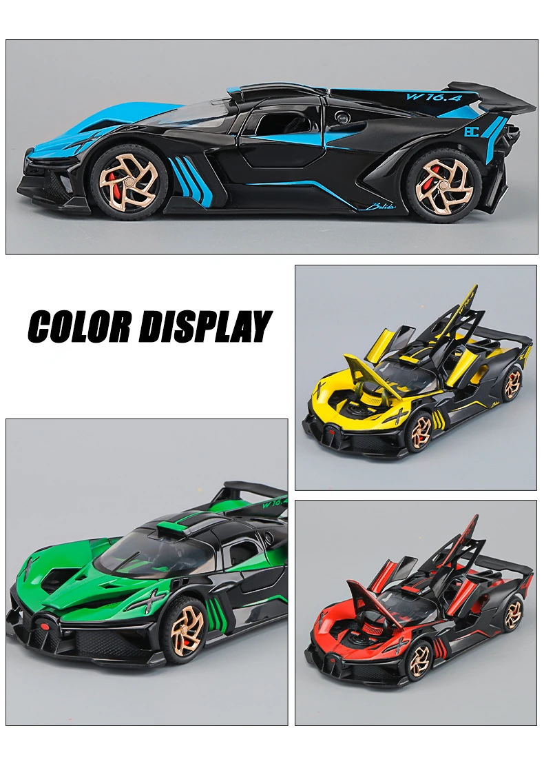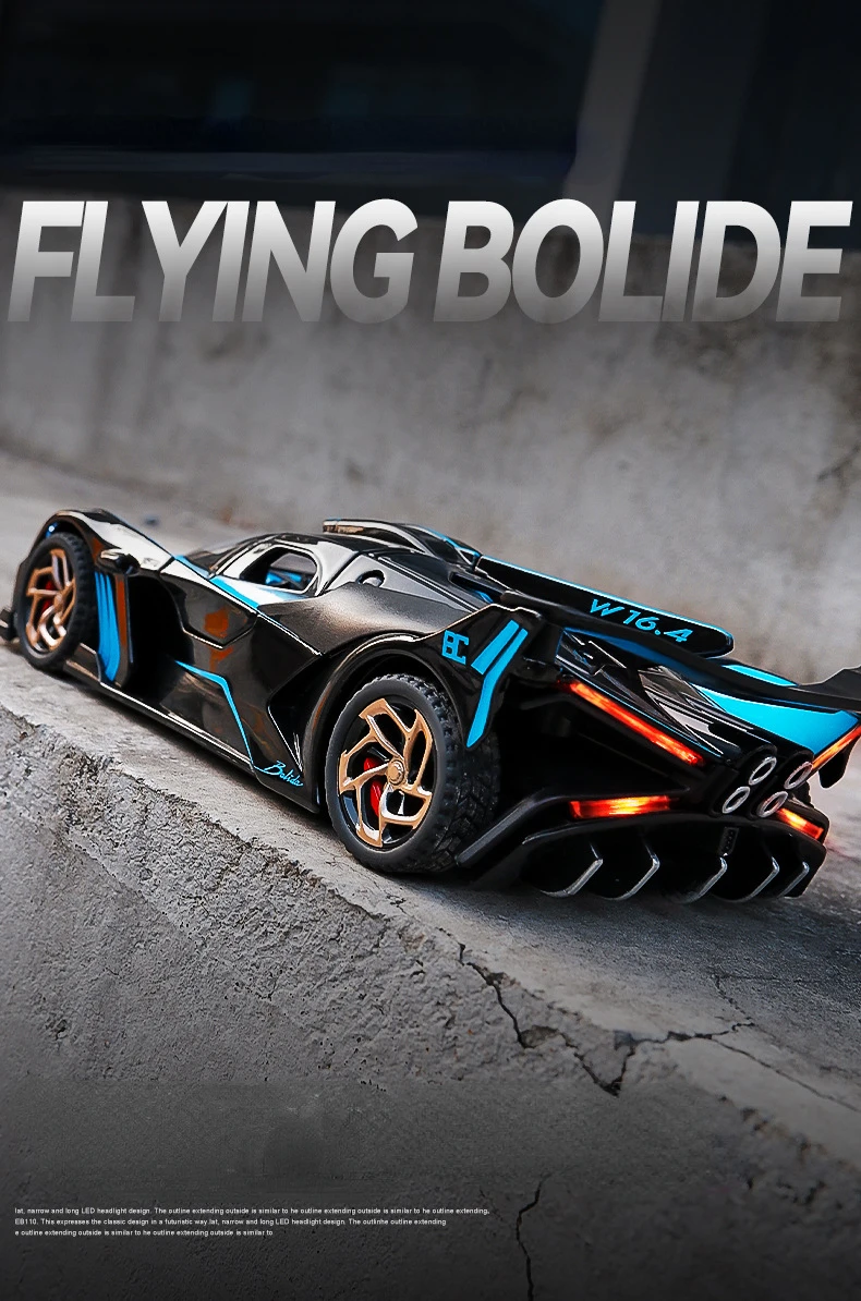 1:32 Bugatti Bolide Alloy Sport Car Model Toys Diecasts Metal Vehicle with Sound Light Pull Back Decoration Boy Gifts